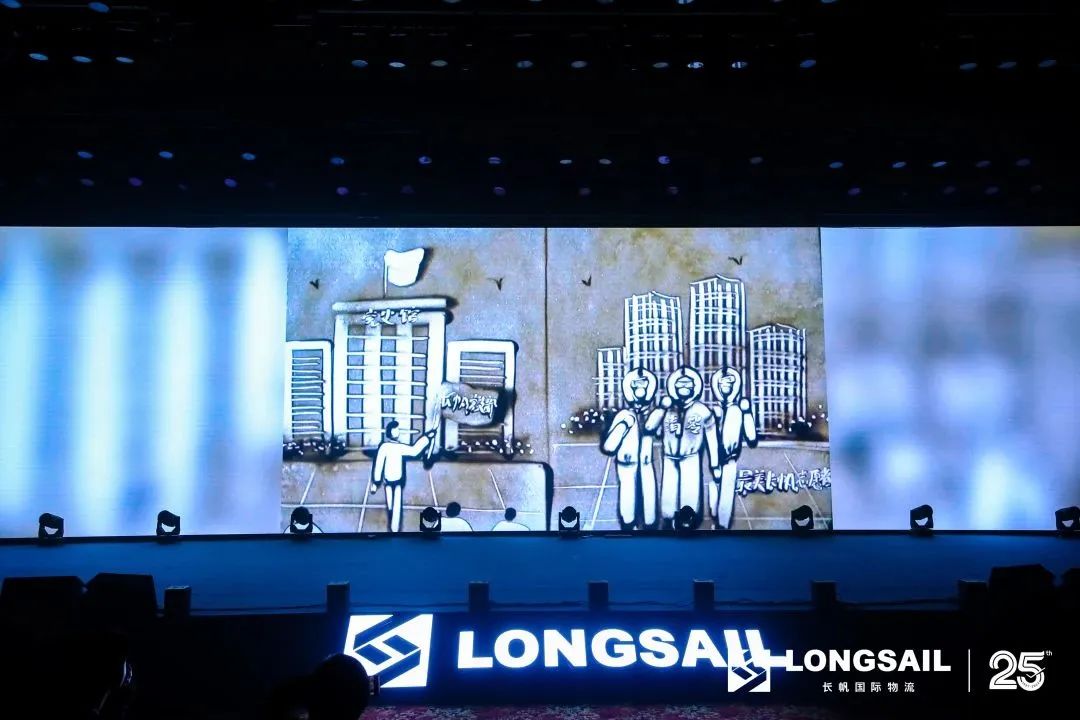 伴隨著沙畫(huà)視頻的播放,全體員工在一幅幅形象生動(dòng)的沙畫(huà)以及一段精彩的VCR采訪視頻中,回顧長(zhǎng)帆25年的成長(zhǎng)歷程。